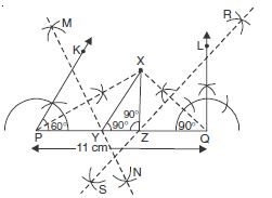 2. Draw ∠KPQ = 60 ( ∠Y = 60) and ∠LQP = 90 ( ∠Z = 90)