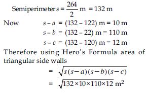 Let sides of triangular side walls of fly- over in metres are a, b and c.