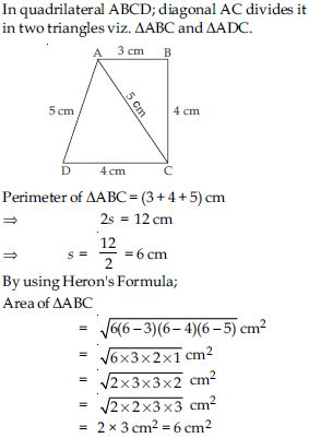 Find the area of a quadrilateral ABCD in which AB = 3 cm, BC = 4 cm, CD = 4 cm, DA = 5 cm and AC = 5 cm.