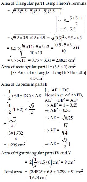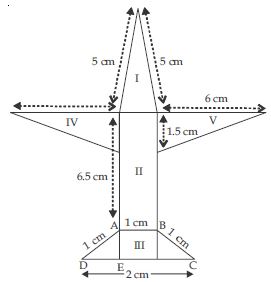 Radha made a picture of an aeroplane with coloured paper as shown in Fig. Find the total area of the paper used.