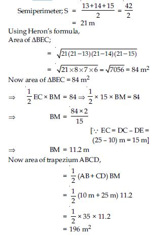 Now it is enough to find the area of ABC whose sides are AB = BC = 30 m and AC = 48 m Perimeter (2s) of ABC = (30 + 30 + 48) m