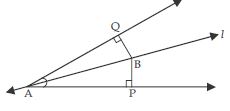 Line l is the bisector of an angle ∠A and B is any point on l. BP and BQ are perpendiculars