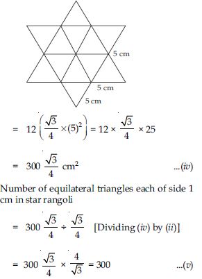 So, total area of star rangoli = 12 × area of an equilateral triangle of side 5 cm