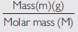 We know that, the number moles of a substance, n =