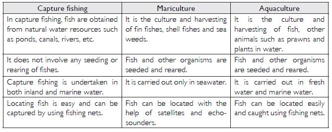 Fishes are obtained by capture and culture fisheries. In capture fisheries, fishes are caught from natural water bodies (both freshwater and marine). In culture fisheries, fishes are reared in artificial water resources.