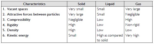 (a) Tabulate the differences in the characteristics of states of matter.