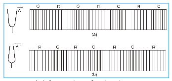 Sound in the air gets propagated in the form of longitudinal wave motion consisting of the regions of compressions and rarefactions. Consider, for example, a tuning fork in a state of vibration [Fig. 1(a)]. As a prong moves towards the right, it compresses the layer of air in contact with it. As air has elasticity, the compressed air tends to relieve itself of its strain and moves forward to the right to compress the next layer and so on. Thus, a wave of compression moves towards the right. At the point of compression, there is an increase of pressure (shown by C). At the point of rarefaction, the concentration of particles is least (shown by R).