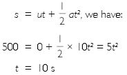 u = 0; a = 10 ms-2; s = 500 m; t = ?