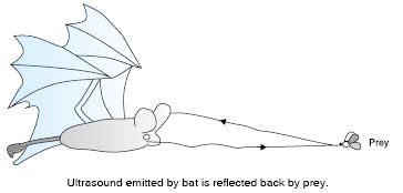 Bats search their prey by emitting ultrasonic squeaks. High frequency ultrasonic squeaks of the bat are reflected from prey and returned to bat’s ear as shown in the Fig. The amount and nature of reflected wave helps bat in estimating the size and distance of prey.