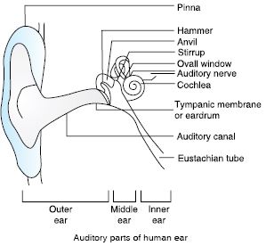 The outer ear consists of pinna and auditory canal. Pinna is a cup-shaped fleshy part of the