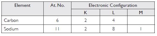 Write the distribution of electrons in carbon and sodium atoms.