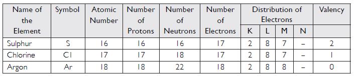 With the help of the table given below, find out the mass number of oxygen and sulphur atom.