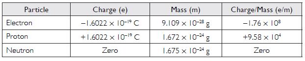 Compare the properties of electrons, protons and neutrons.