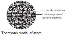 (1) According to Thomson, an atom may be regarded as a uniform sphere of positive electricity (protons) in which negatively charged electrons are embedded like the seeds in a watermelon.