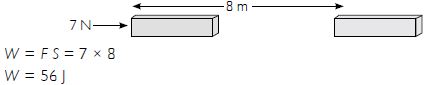 A force of 7 N acts on an object. The displacement is, say 8 m in the direction of the force. Let us take it that the force acts on the object through the displacement. What is the work done in this case?