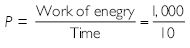 W = 1,000 J; t = 10 s; P =?