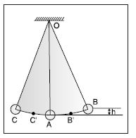 At mean position i.e., at A, potential energy, PE, is zero. When it is displaced from A to B, it gains PE. If B is at a distance h vertically above A, the bob has a PE of mgh. When it is released and it returns from B to say B’, it loses some of the PE and has a corresponding gain of kinetic energy (KE). On reaching A, its whole of PE (at B) gets converted into KE. (at A). The speed of the bob (u) at A is: