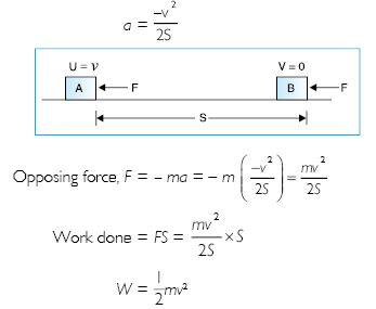 by the application of an opposing force F. Let it stops after covering a distance S.