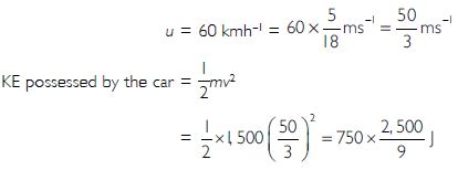 Calculate the work required to be done to stop a car of 1,500 kg moving at a velocity of 60 kmh-1.