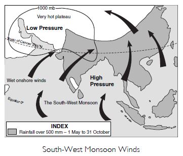 (d) The Indian Ocean: India lies at the head of the Indian Ocean. S.W. Monsoons originate