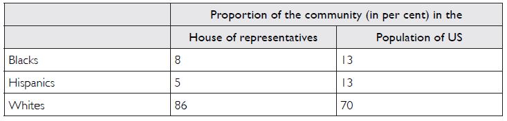 won elections to the US Congress. Compare these to the proportion of these communities in