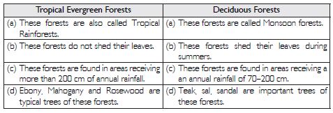 (i) The Tropical Rainforests: These forests are found in areas where annual rainfall is more