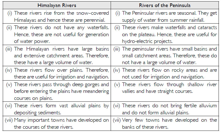 Discuss the significant difference between the Himalayan and the Peninsular rivers.