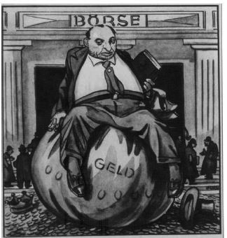 The given poster depicts Jews in a very bad light. They are stereotyped as selfish, money-minded and unscrupulous by nature.