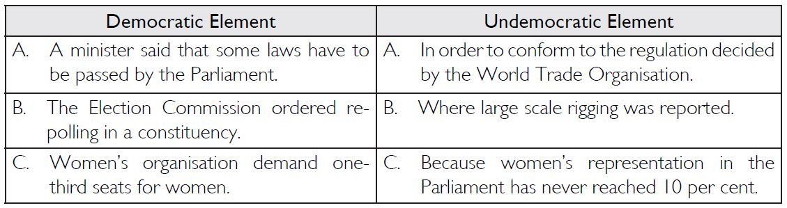 Each of these statements contains a democratic and an undemocratic element. Write out the two separately for each statement.