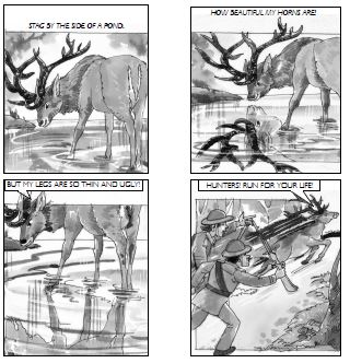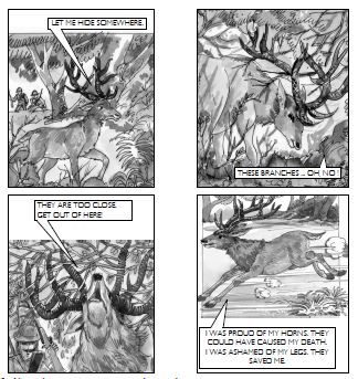A stag was standing by the side of a pond. He looked at his reflection in the water. He was