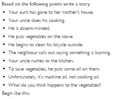 Last month my aunt decided to visit her parents. She had to stay there for a week. My uncle was left alone in the house. He decided to do cooking by himself. But he is very absent-minded. One day while cooking, he put vegetables on the stove. He came out and began to clean his bicycle. The neighbour called out saying that something was burning. Hearing this, my uncle rushed to the kitchen. He put some oil on the vegetables to save them. Unfortunately, it was the machine oil and not the cooking oil. The vegetables burnt badly and got spoiled completely.