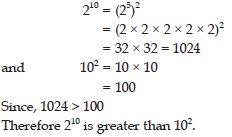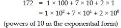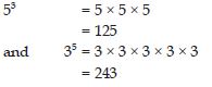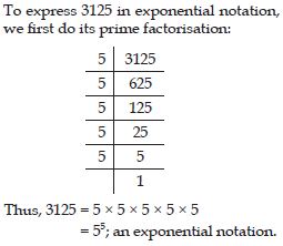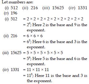 Give five examples, where a number is expressed in exponential form. Also identify the base and exponent in each case.