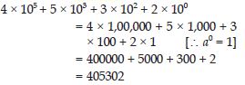 4 × 105 + 5 × 103 + 3 × 102 + 2 × 100