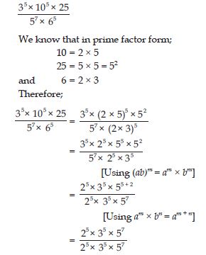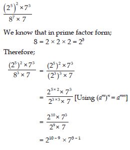 5 × 5 × 7 × 7 × 7 = 52 × 73 (read as 5 squared 7 cubed)