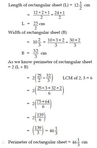 A rectangular sheet of paper is 12 ½ cm long and 10⅔ cm wide. Find its perimeter.