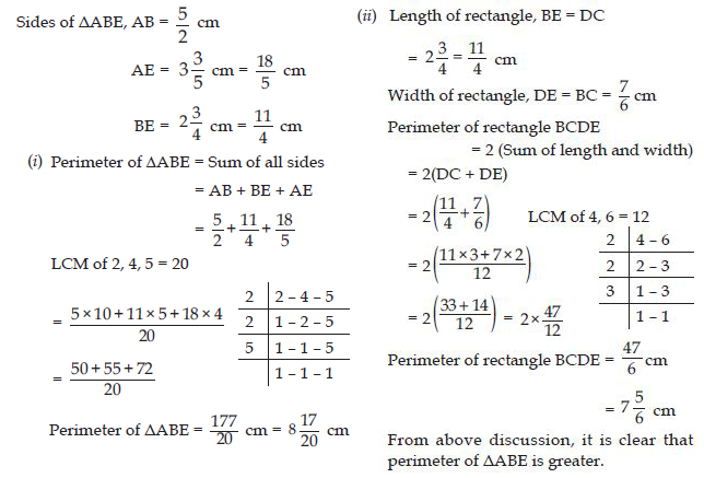 Find the perimeters of (i) ΔABE (ii) the rectangle BCDE in the figure. Whose perimeter is greater?