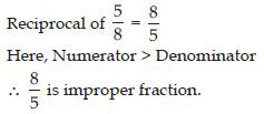 Find the reciprocal of 5/8. Classify the reciprocals as proper fraction, improper fraction and whole number.