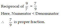 Find the reciprocal of 9/7. Classify the reciprocals as proper fraction, improper fraction and whole number.