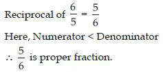 Find the reciprocal of 6/5. Classify the reciprocals as proper fraction, improper fraction and whole number.