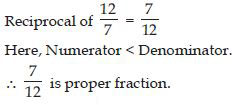 Find the reciprocal of 12/7. Classify the reciprocals as proper fraction, improper fraction and whole number.