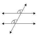 Are the angles marked 1 and 2 adjacent? If they are not adjacent, say, ‘why’.