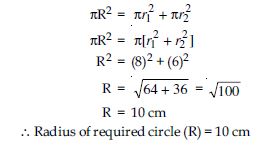 The radii of two circles are 8 cm and 6 cm respectively. Find the radius of the circle having area equal to the sum of the areas of two circles.