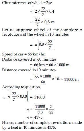 The wheels of a car are of diameter 80 cm each. How many complete revolutions does each wheel make in 10 minutes when the car is travelling at a speed of 66 km per hour?