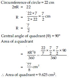 Find the area of a quadrant of a circle whose circumference is 22 cm.