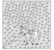 A horse is tied to a peg at one corner of a square shaped grass field of side 15 m by means of a 5 m long rope (see fig.). Find : the area of that part of the field in which the horse can graze.