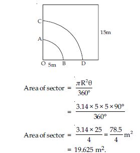 A horse is tied to a peg at one corner of a square shaped grass field of side 15 m by means of a 5 m long rope (see fig.). Find :