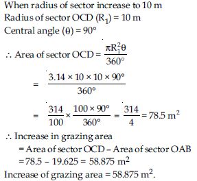 the increase in the grazing area if the rope were 10 m long instead of 5 m. (Use = 3.14)