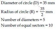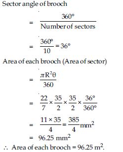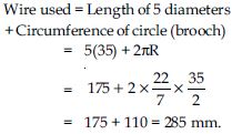 A brooch is made with silver wire in the form of a circle with diameter 35 mm. The wire is also used in making 5 diameters which divide the circle into 10 equal sectors as shown in fig. Find : the total length of the silver wire required.