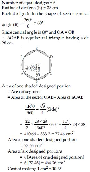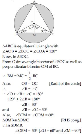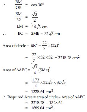 In a circular table cover of radius 32 cm, a design is formed leaving an equilateral triangle ABC in the middle as shown in fig. Find the area of the design.