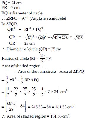 Find the area of the shaded region in fig., if PQ = 24 cm, PR = 7 cm and O is the centre of the circle.